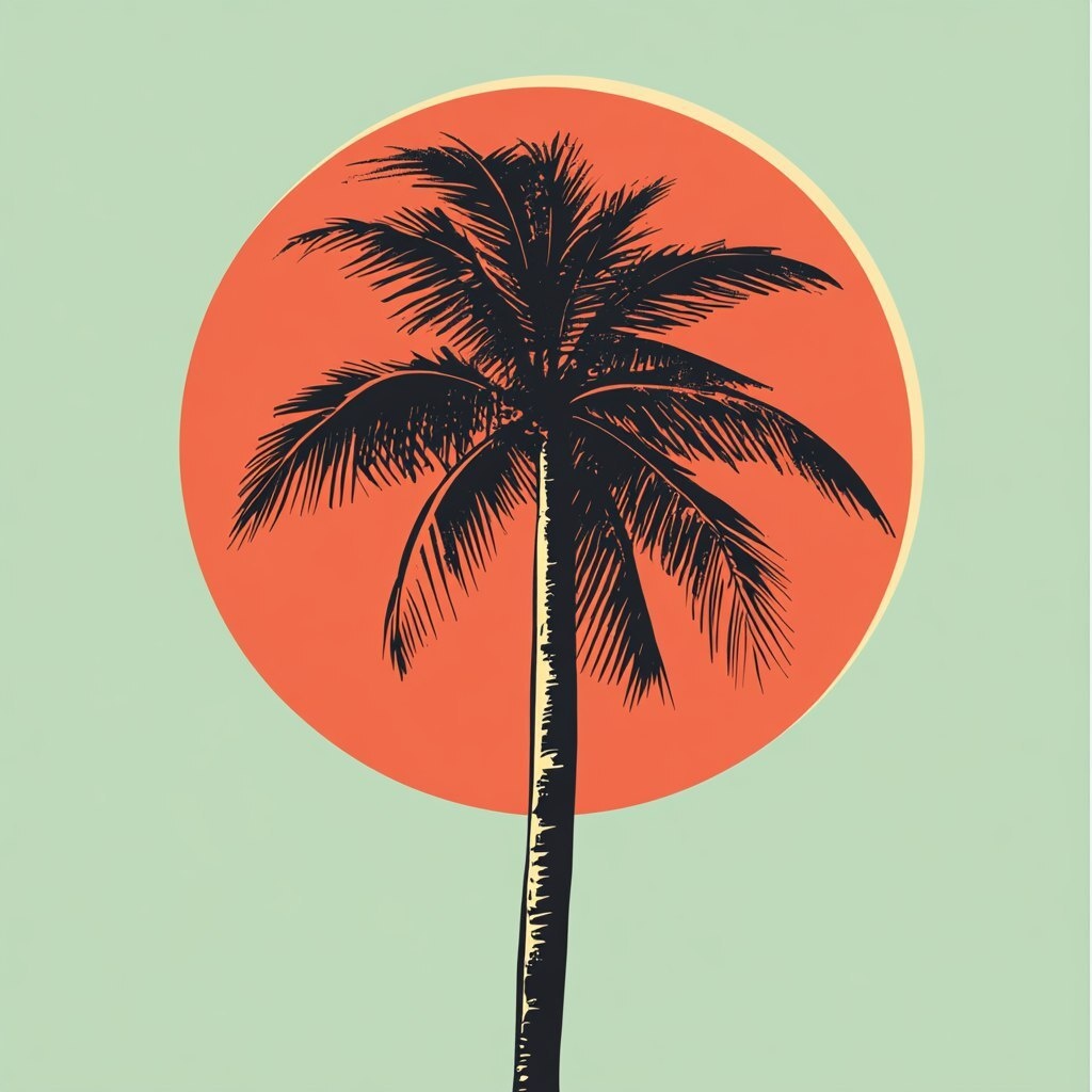 Создано на основе запроса: 3 colour screen print vector illustration solid, simplistic, palm tree