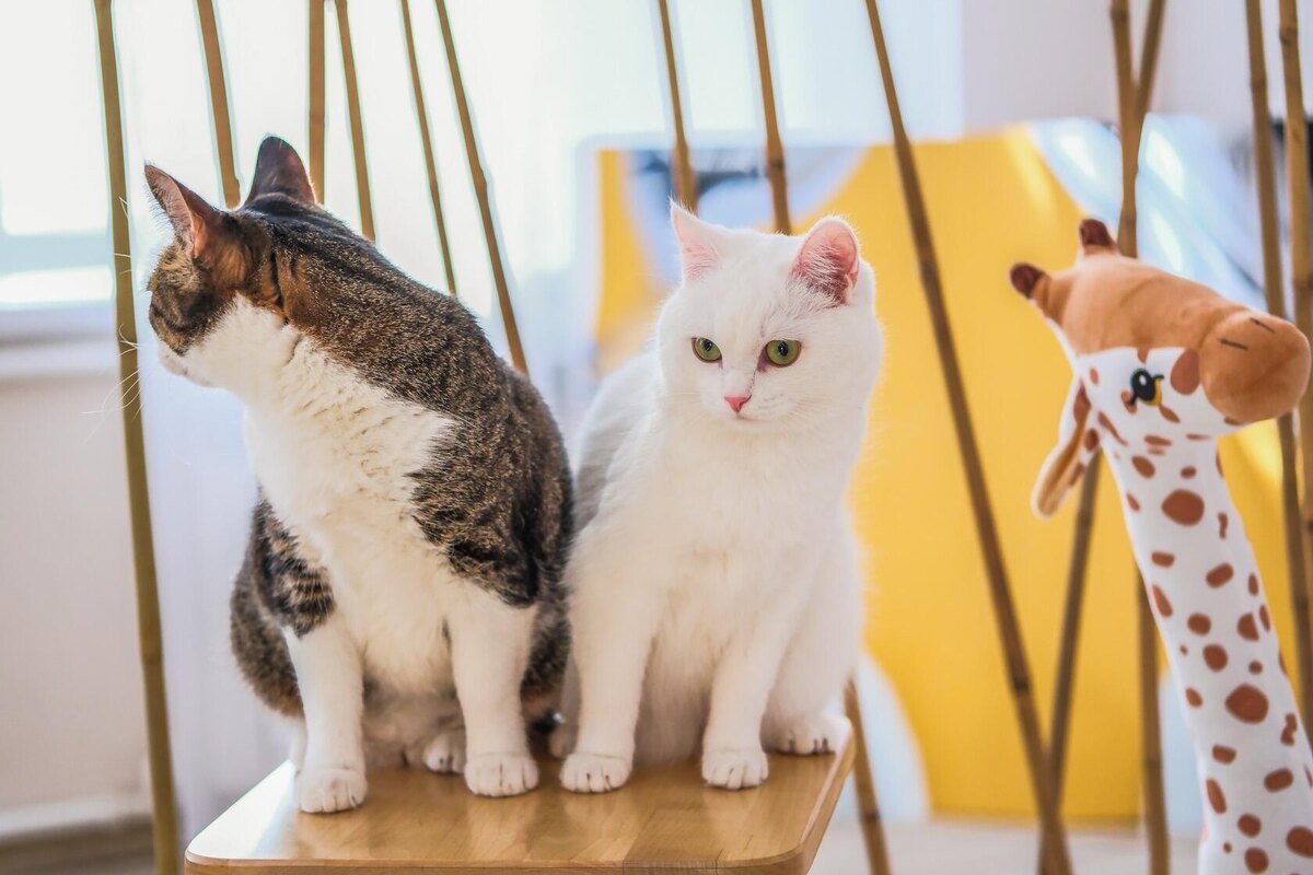 На то, чтобы Мята адаптировалась и привыкла к новому питомцу, ушел целый год. Мята сама по себе очень подверженна стрессу, а тут новый член семьи. Я далеко не сразу сориентировалась, как облегчить их адаптацию и конечно совершала ошибки. Дом для кошки - это полностью её территория, где она чувствует себя в безопасности. По всему дому кошка оставляет свои запаховые метки, потеревшись о предметы, она знает где находится её еда, вода и лоток. После появления второй кошки, важно чтобы не было борьбы за жизненно важные ресурсы. Поэтому, обязательно поставьте для нового питомца отдельную миску для еды, свою миску с водой и второй лоток. Тоже самое правило касается и остальных вещей: должна быть вторая когтеточка, лежанка, домик и игрушки. Ещё одной причиной конфликтов может стать ваше внимание. Важно уделять его поровну: одновременно или по очереди. Если подошли погладили одну кошку, обязательно нужно погладить вторую. Если 5 минут уделили игре с одним питомцем, столько же времени важно удел