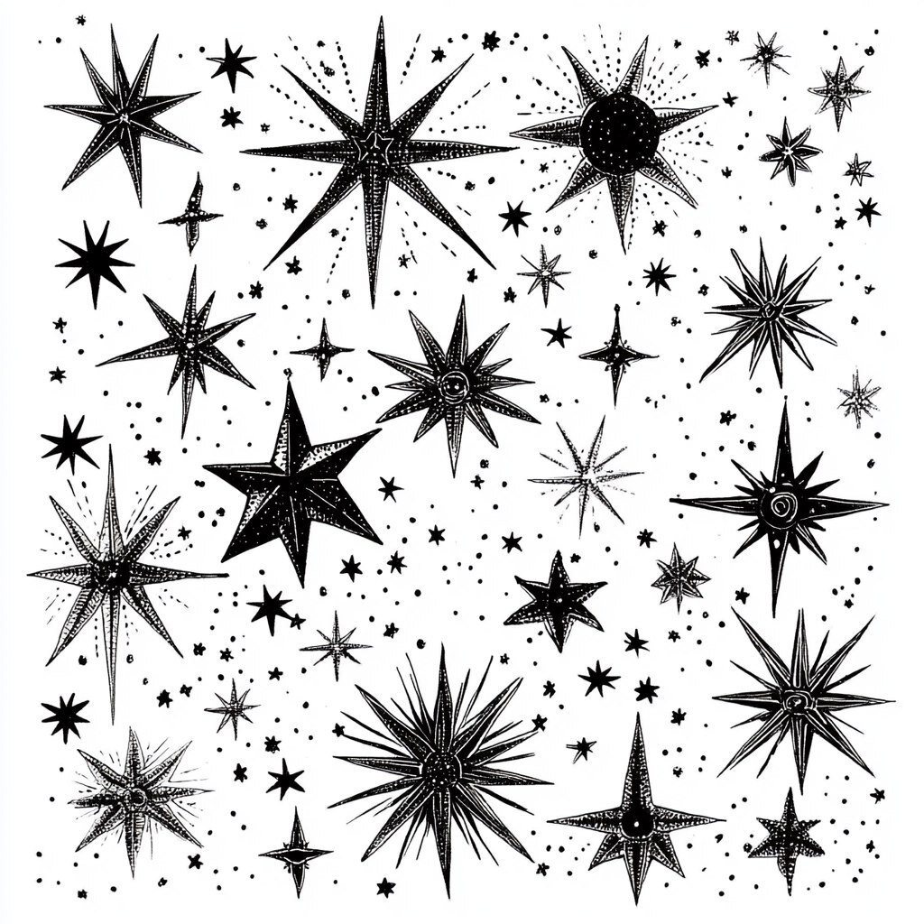 Создано на основе запроса: stars in the style of Dürer Linogravra, mystical tarot style, on a white background