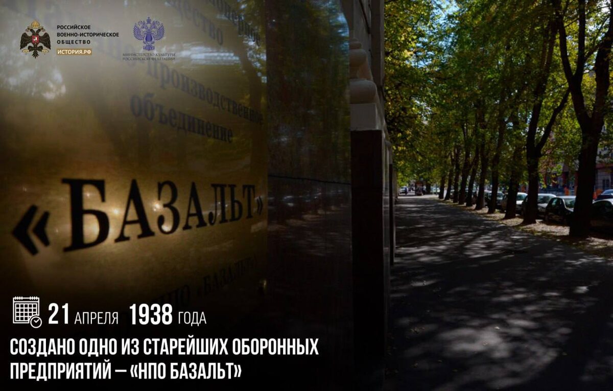 21 апреля 1938 года было создано одно из старейших оборонных предприятий — «НПО Базальт»