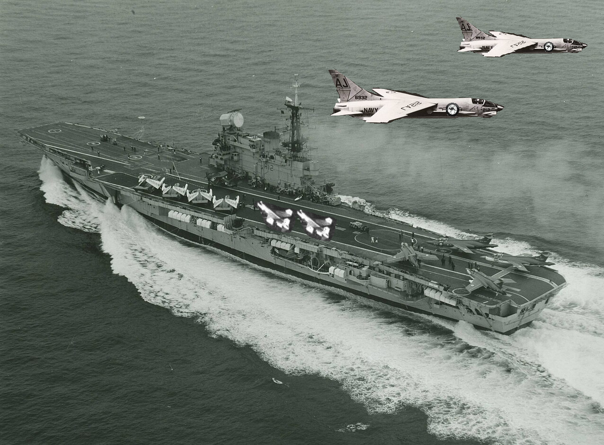 * 12 штурмовиков A-4G «Skyhawk» — основных ударных машин, а также вспомогательных перехватчиков, способных нести ракеты «Сайдвиндер»;
