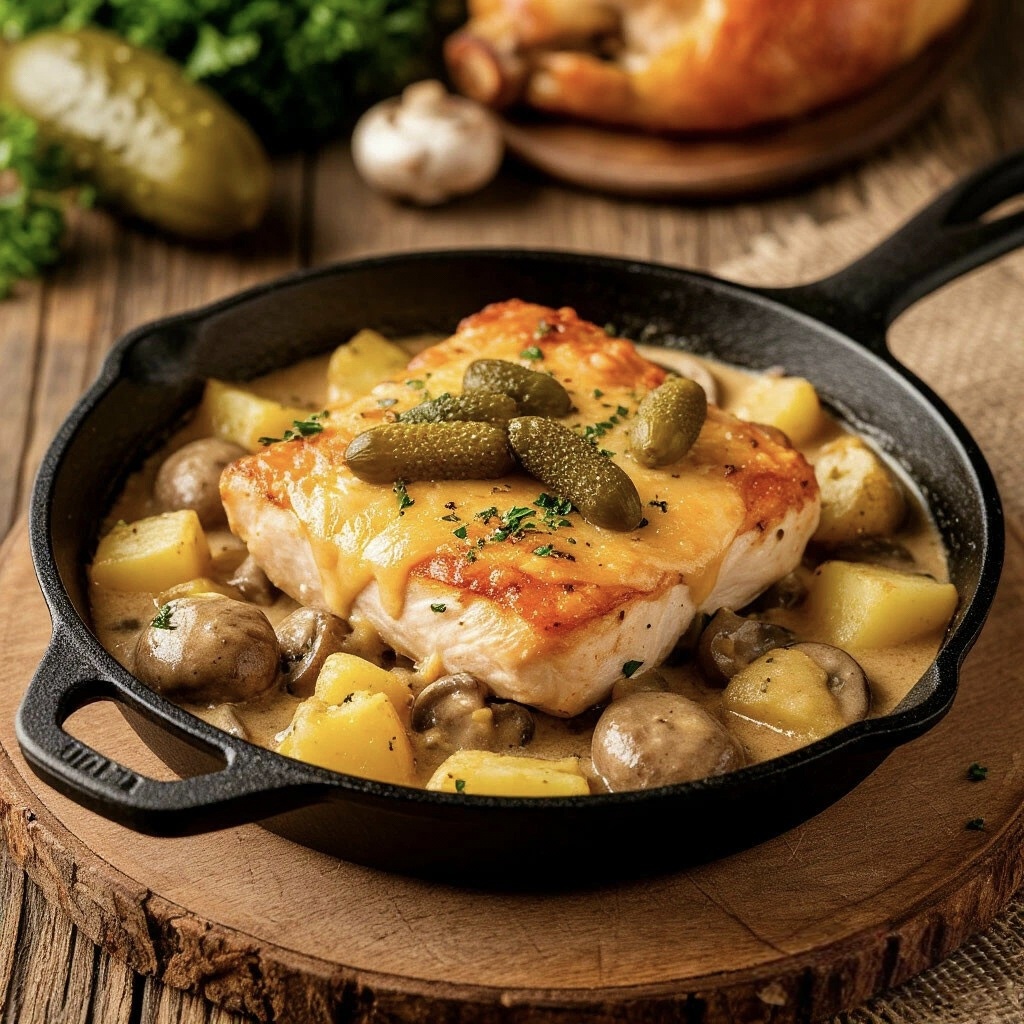 Всех приветствую 🖖 Хочу поделиться с вами рецептом жаркого с курицей и грибами в сливочном соусе. Поделюсь рецептом на одну порцию , но вы можете сразу готовить побольше. — Выход на одну порцию 1️⃣Отварной чищеный картофель нарезаем на кубики среднего размера, укладываем все в форму для запекания или сковородку с высокими бортиками. 2️⃣Нарезаем куриное филе на порционые кусочки весом примерно по 50 грамм, или на небольшие кубики размером 1,5-2 см 3️⃣Нарезаем чищеный лук , маленьким кубиком 4️⃣Затем нарезаем шампиньоны ломтиками 5️⃣На разогретой сковородке , смазанной растительным маслом , обжариваем куриную грудку до золотистого цвета , в конце приготовления добавляем соль 6️⃣Нашу куриную грудку распределяем в форме для запекания вместе с картофелем 7️⃣На сковородке где жарили курицу, обжариваем репчатый лук и грибы , до золостиого красивого цвета , вливаем сливки , и тушим до загустения соуса , в конце добавляем соль и любимые ваши специи 8️⃣Добавляем к курице и картофелю , наш