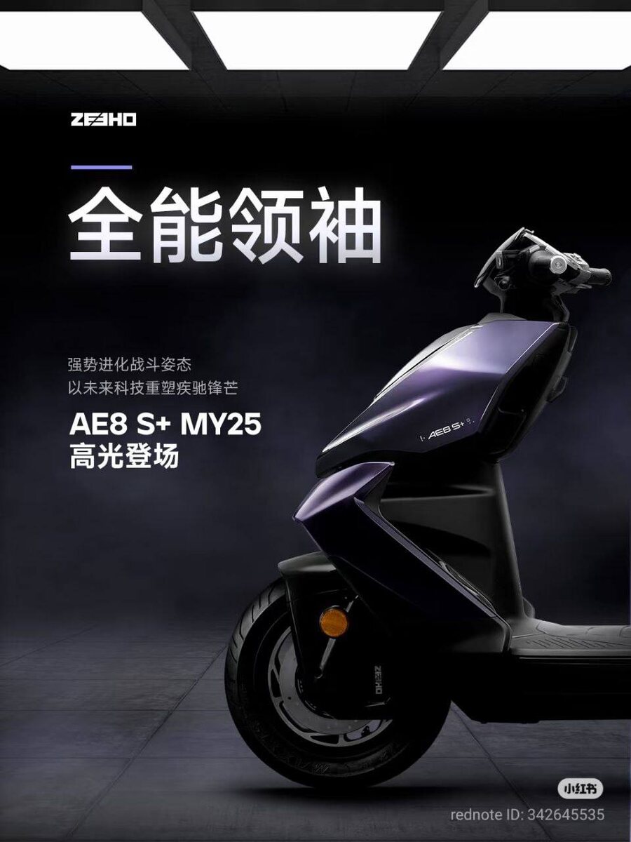 Полное описание модели Zeeho AE8S+ MY25 Новая цветовая гамма Световые решения с эффектом "вечных сумерек" Технические характеристики Тип двигателя: Центральный мотор чемпионского уровня Особенности: Режим "азота" — кратковременное повышение мощности до 3 минут Прирост мощности: +20% по сравнению с предыдущими моделями Увеличение крутящего момента на 16,7% Снижение неподрессоренной массы на 80% (по сравнению с мотор-колёсами) Аккумулятор и запас хода Тип: Двойная литиевая батарея Параметры: 74 В, 45 А·ч Запас хода: До 185 км по стандарту GB Преимущество: Увеличение пробега на 54% Испытания: 500 000 циклов тестирования на износ 30 000 км пробега на тестовых маршрутах Системы управления и безопасности Приборная панель: 8-дюймовый TFT-дисплей (полноцветный) Увеличенная площадь: +60% Частота обновления: 60 Гц Процессор: 8-ядерный Органы управления: Геймпад для спортивного управления Кнопки с защитой IP67 (вода, пыль) Надежность: выдерживают 500 000 нажатий и давление до 10 кг Систе