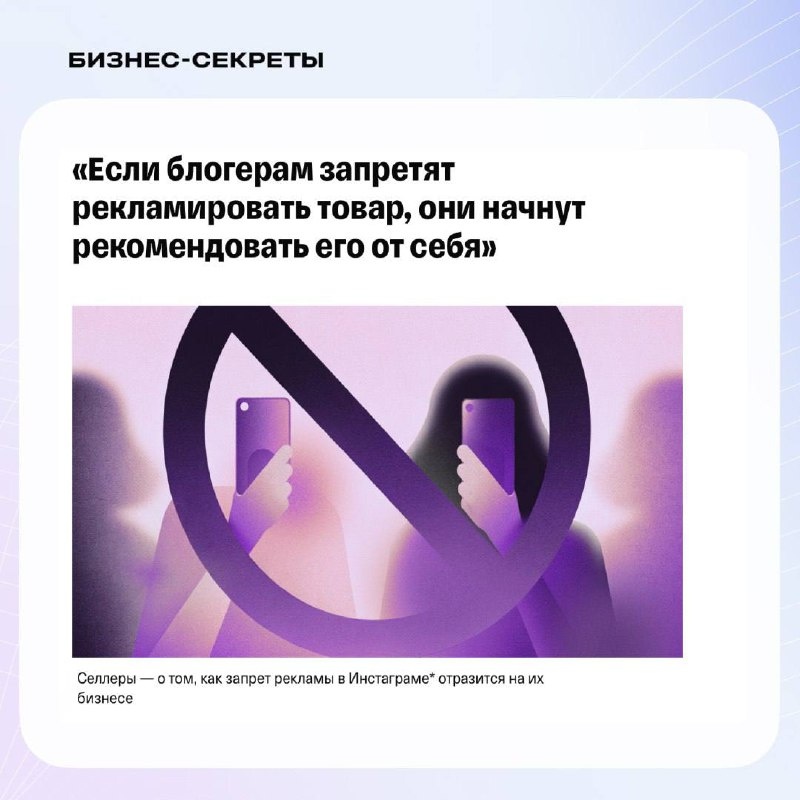 Как запрет рекламы* отразится на работе блогеров? Что будет с рынком? Какие каналы тестировать и за какими показателями следить? Эксперт Seller24 Олег Кузнецов дал свои комментарии об этом «Бизнес‑секретам». Читайте материал по ссылке * В статье речь идёт об Instagram и Facebook – соцсети принадлежат компании Meta, которая признана экстремистской и запрещена в России.