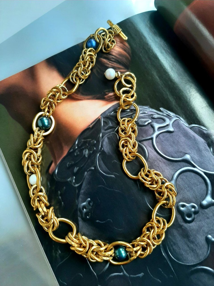 Колье византийского плетения с крупными звеньями и чеканной текстурой 🔥 Вставки жемчуг Swarovski💎 Размер регулируется 55 - 40 см Носим как колье, колье - чокер или как колье - галстук 💥💃 Материал АА ⛓🌶 Ручная работа 🔨💯 🌶 Задать вопрос и оформить заказ можно здесь: @ACULA_JW Наш телеграмм канал https://t.me/JW_ACULA