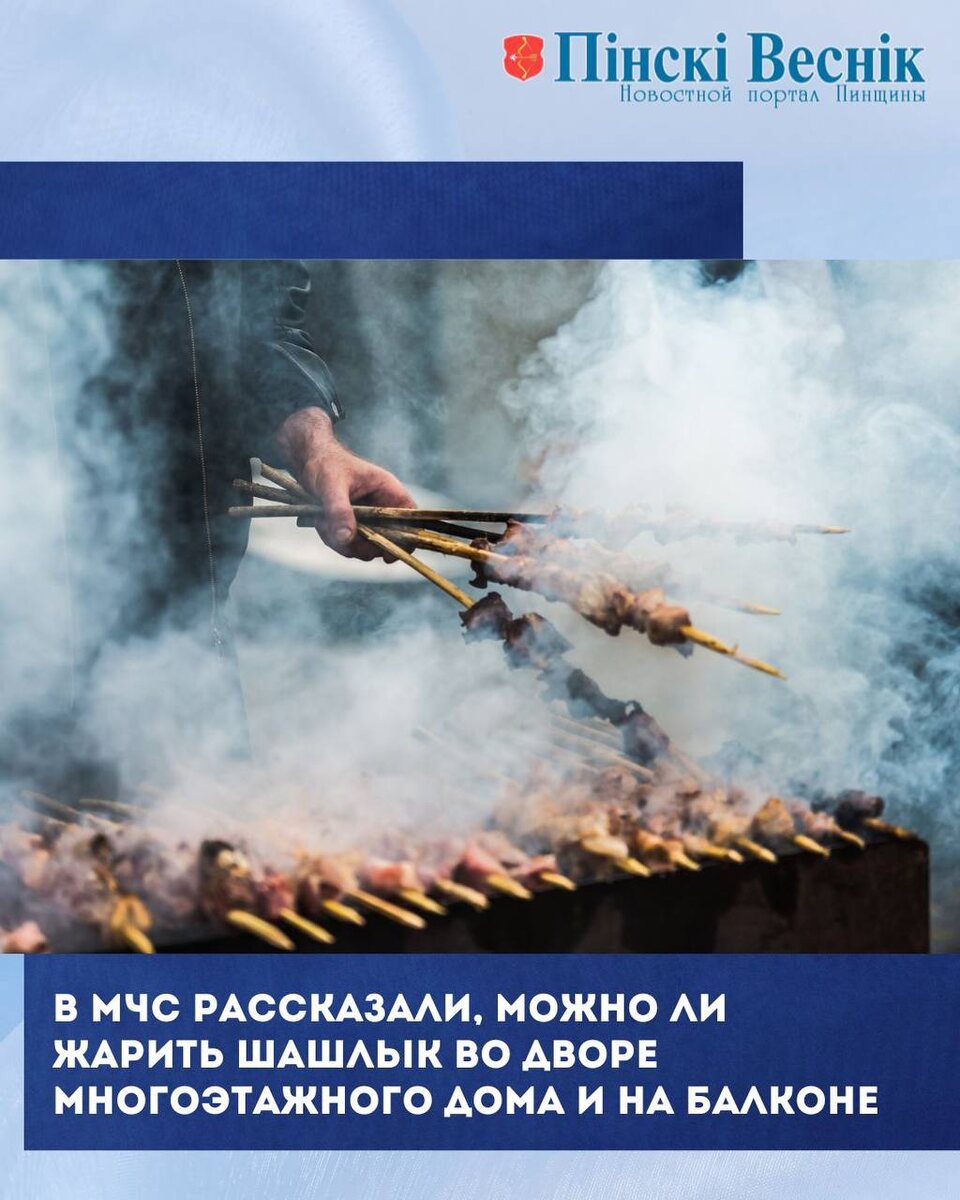 📌В МЧС рассказали, можно ли жарить шашлык во дворе многоэтажного дома и на балконе Законодательством о пожарной безопасности не запрещено разжигать мангал во дворах жилых домов. Но делать это нужно соблюдая определенные правила. ▶️https://tinyurl.com/4yfcayp2 👉А вот жарить шашлык на своем балконе, запрещено, уточнили в МЧС. 📍📍@Пинский Вестник ЮТУБ | САЙТ| ИНСТ | ВК | ОК | ФЕ | Прислать новость