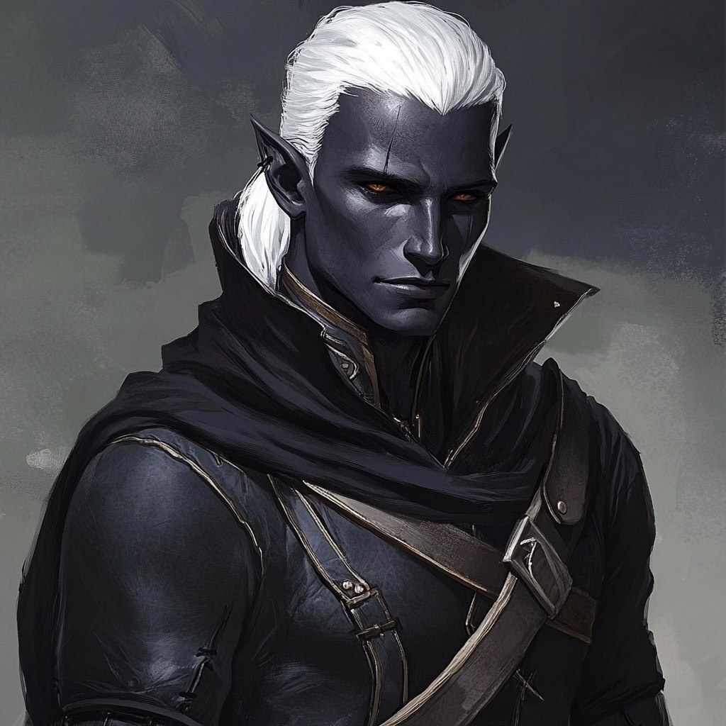 Создано на основе запроса: DnD male drow dark elf, blacksmith, black skin