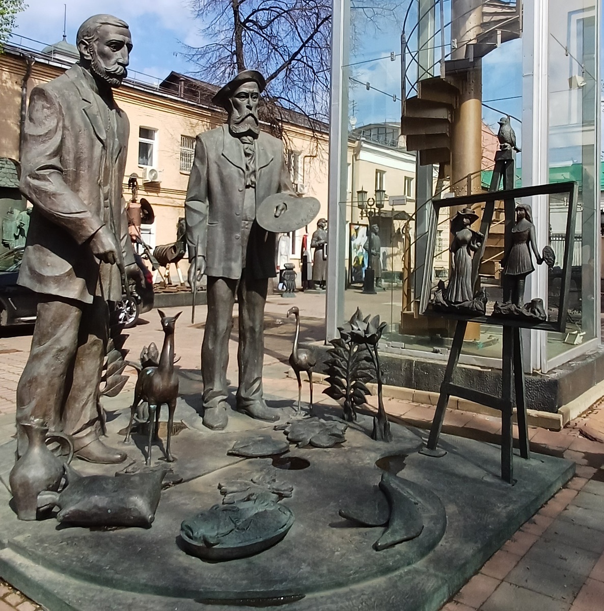 Побывали на днях в Московском музее современного искусства на Петровке, 25, основателем которого в 1999 году был скульптор Зураб Церетели. Во внутреннем дворе этого музея можно совершенно бесплатно полюбоваться работами этого мастера и других известных скульпторов современности, среди которых много необычных скульптур. Попали мы в музей достаточно спонтанно: целью нашей прогулки по Петровке был Высоко-Петровский монастырь - очень уж нам хотелось увидеть, как его украсили к Пасхе. Свернули со Страстного бульвара на Петровку, а там, прямо напротив Высоко-Петровского монастыря, были гостеприимно открыты ворота Московского музея современного искусства. Ну, грех же не заглянуть, когда там возвышаются вот такие скульптуры! Оказалось, что этот 16-метровый бронзовый памятник Церетели воздвиг в честь святой равноапостольной Нины Грузинской. Во внутреннем дворе музея была представлена пара десятков его работ, среди которых нам особенно понравились памятники Казимиру Малевичу с его знаменитой к