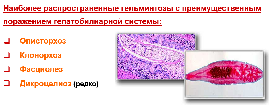 Данные заболевания имеют небольшие отличия по морфологии и циклу развития возбудителя, но сходны по патогенезу и клинико-диагностической картине. Поражение печени и гепатобилианой системы иногда может встречаться при аскаридозе, некоторых вариантах шистосомоза и др. гельминтозах. Поражение печени и гепатобилиарной системы проявляется развитием холангита, холангиогенных кист, холангиохолецистита, хронического гепатита и их осложнениями (гнойный холангит, абсцессы печени, цирроз печени, холангиокарцинома и др.).