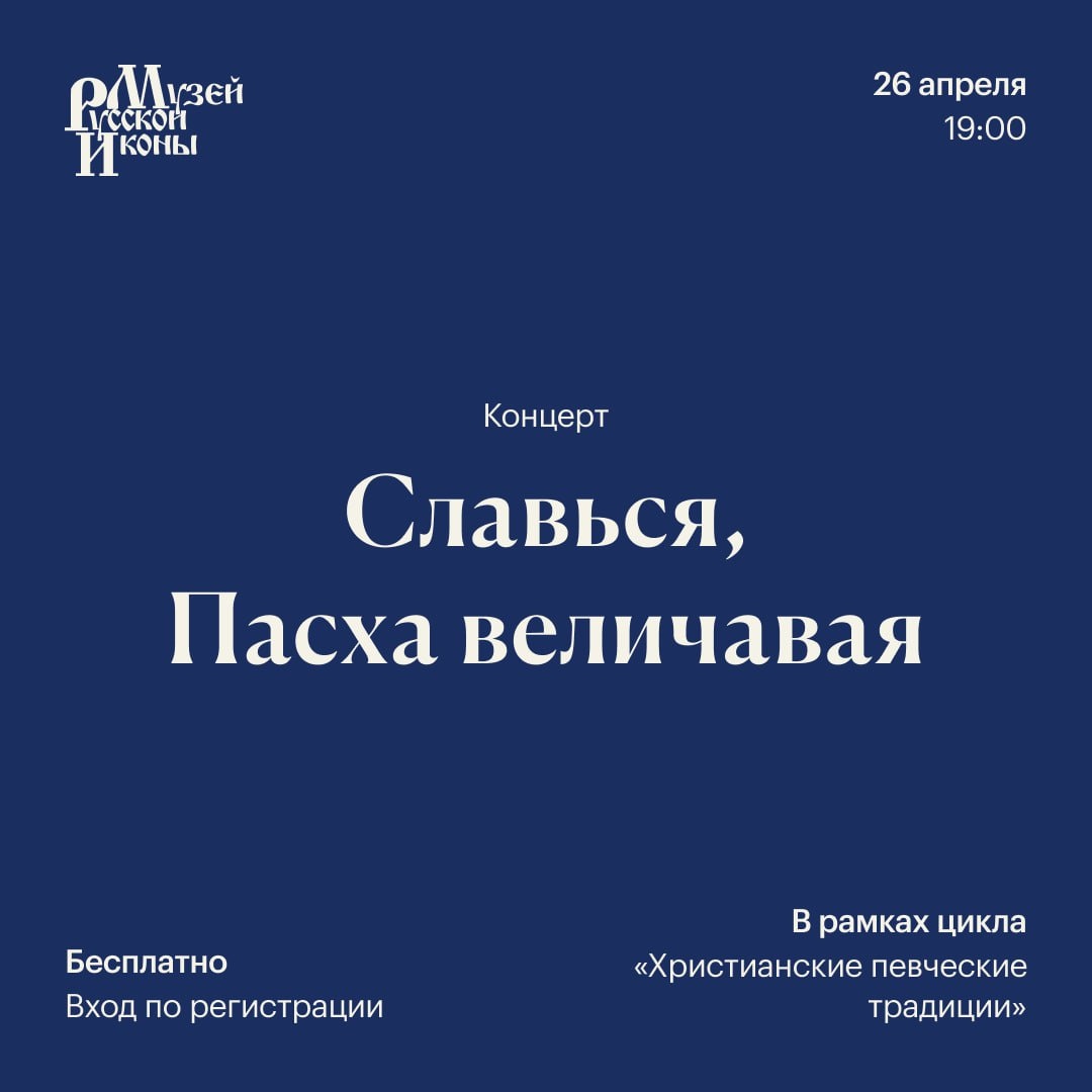Концерт | 26 апреля, 19:00 Концерт в честь торжества воскресения Христова включает в себя подлинные шедевры мировой музыкальной культуры, посвященные Богу, душе и молитве. В программе прозвучат произведения И.С. Баха, В.А. Моцарта, Р. Вагнера, П. Чеснокова, А. Гольденвейзера. Исполнители: Татьяна Рубинская (меццо-сопрано), приглашенная солистка Московской филармонии и Москонцерта, лауреат международных конкурсов; партия фортепиано – Марина Григорьева, лауреат международных конкурсов. 👉 Мероприятие проводится бесплатно, число мест ограничено. Узнать больше о программе и записаться. ✅ Не забудьте отменить бронь, если не сможете прийти. Желающих посетить концерт много: на освободившиеся места смогут записаться другие гости.