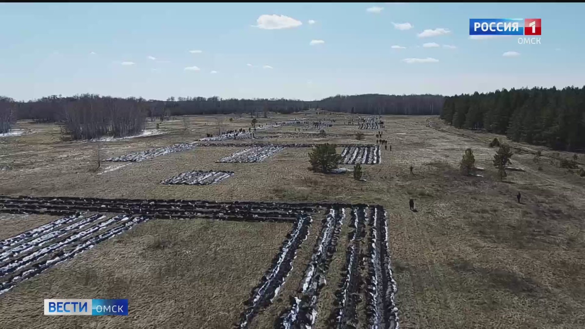 Под Омском на площади более 3 гектаров заложили геоглиф «Победа-80» из 9 тысяч сосен