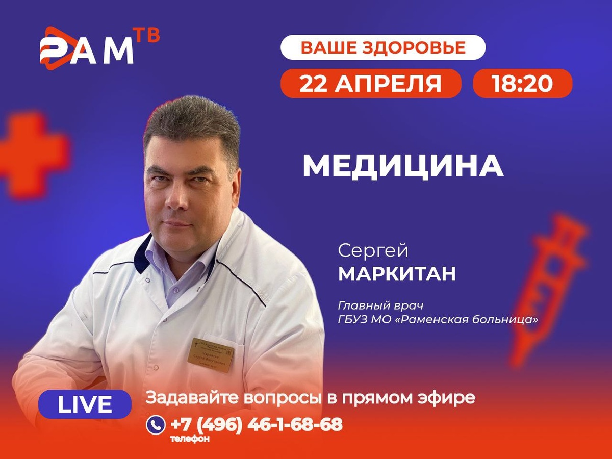 🔴🔴🔴🔴🔴 🔴Приглашаем жителей Раменского округа принять участие в прямом эфире во вторник, 22 апреля, в 18:20. ✅ Гость студии - главный врач Раменской больницы Сергей Викторович Маркитан. ✏️Задать свои вопросы можно по телефону прямого эфира 8-496-46-1-68-68, а также заранее на сайте телеканала РАМТВ Присоединяйтесь к эфиру и задавайте ваши вопросы! 😊Онлайн эфир 😊Мы в ВК 😊Подписаться