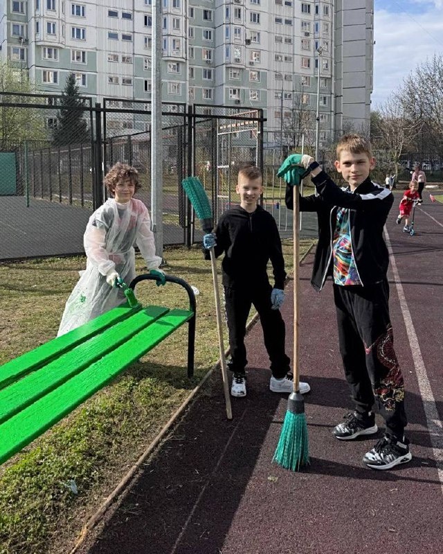 Ученики 4 «Д» на субботнике. Они участвуют в треке «Орлёнок-эколог» 🍃 Ребята убирали мусор и красили лавочки и заборы. Молодцы, «орлята» 😇 #ДОНМ #ШколыКолледжиМосквы #ОрлятаРоссии #ПервичкаПервых