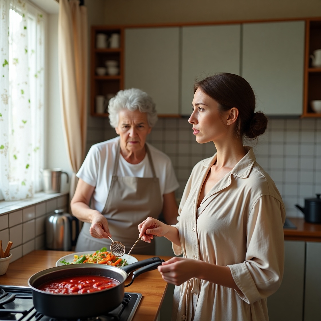 Утром все проснулись раньше обычного. Я слышала, как Валентина Сергеевна гремит крышками, — она всегда начинала день с маленького парада кастрюль: расставляла их в шеренгу, проверяла чистоту. Я надела халат и вышла на кухню.