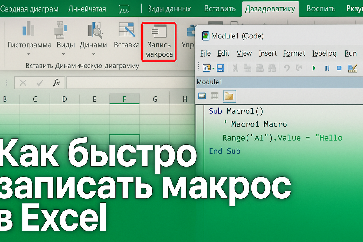 В этом уроке мы научимся создавать простой, но очень полезный макрос для автоматического заполнения заголовков таблицы в Excel. Мы не просто запишем макрос — мы оптимизируем его, сделав код чище, короче и более эффективным. Разберем процесс пошагово, чтобы было максимально понятно даже тем, кто только начинает знакомство с VBA. Итак, перед нами стоит задача: На первый взгляд задача кажется простой, но здесь важно сразу учиться правильно строить код: без лишних действий и максимально оптимизированно. Начнем с самого простого способа — записи макроса: Теперь откроем редактор VBA (Alt + F11) и посмотрим, что у нас получилось. Что мы видим?