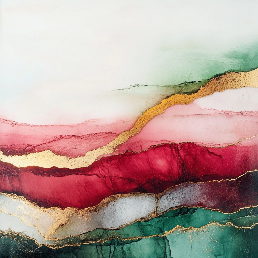 Создано на основе запроса: An abstract and vibrant representation of tourmaline, featuring striking shades of red, green, and pink with the top half filled with soft white space. The lower half showcases the vibrant colors of tourmaline, with the stone’s hues blending smoothly into the white, while subtle gold veins connect the two sections. The design captures the dynamic energy of tourmaline, bringing a bold, lively aesthetic to minimalist, modern interiors. --- Автоперевод: Абстрактное и яркое представление о турмалине с яркими оттенками красного, зеленого и розового с верхней половиной, наполненной мягким белым пространством. Интересно получилось? 🤔 https://dzen.ru/id/65c0c65c86e4f837c27b24d7 #ИИ #AI #нейросеть #midjourney #art