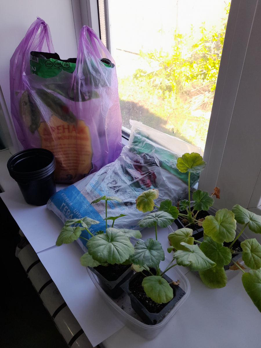 Всем доброе утро😊,хочу поделиться с вами тем чем я вчера занималась🧤. В первую очередь я занялась геранью, так как она хорошо подросла ей стало тесно в кассетах и поэтому я пересадила герань в горшки побольше. Для начала как обычно подготавливаю горшки: дно горшка засыпаю дренажным слоем, затем немного засыпаю дренаж специальным грунтом. Теперь вынимаю герань из кассет и пересаживаю в горшок побольше, досыпаю специальный грунт и готово. Обязательно в поддон горшка наливаю воды и на этом всё. Теперь надеюсь что герани станет лучше😊 А теперь приступаем к розе из магазина магнит, но прежде чем приступить расскажу что меня беспокоит по поводу неё. Сначала она чувствовала себя прекрасно, росли новые веточки, готовилась к цветению. И вот розочка расцвела,такая красота была😍. Прошло время и розочка отцвела...и на этом всё🙄 Прошло долгое время а она не меняется ( никаких изменений), перестали появляться новые веточки, а также и бутоны. Я стала переживать и думать что можно сдел
