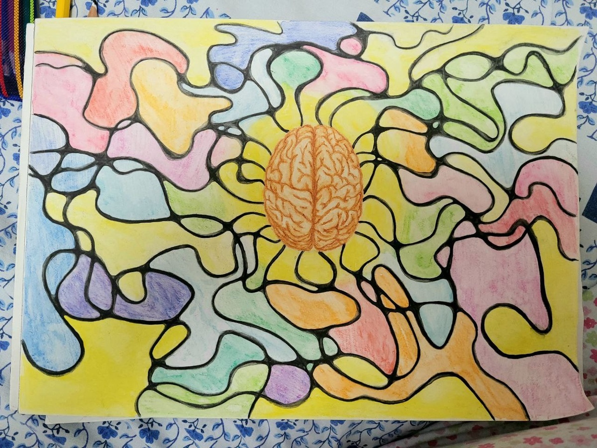 А вот и мой рисунок. Я знаю, что в технике «нейрографика» обычно нет чётко обозначенных предметов, но мне важно было принципом коагуляции сформировать ребенку цельный, здоровый мозг в соединении с нейронными связями. Кстати, не специально так получилось, но я только потом увидела и поняла, что к мозгу подключены 22 дорожки нейронов, и это тоже знаково для меня, как 22 Аркана Таро, как 22 буквы иврита. Ещё одно подтверждение, что Высшие силы с нами 🙏