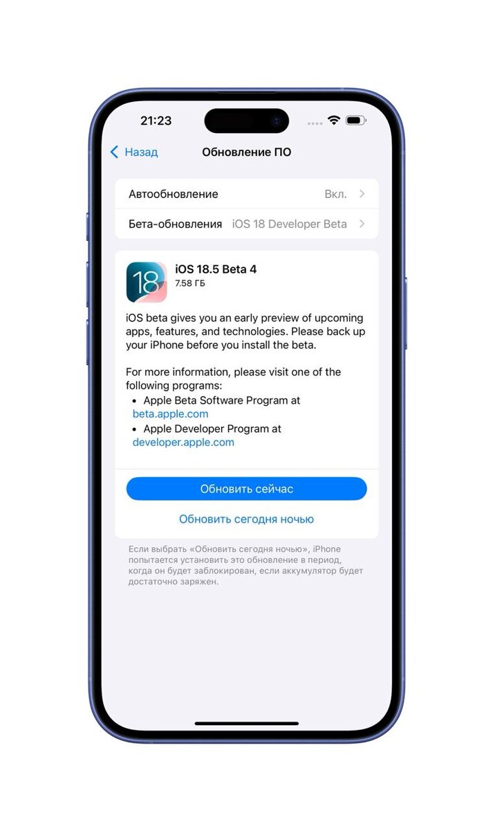 Стала доступна четвёртая бета-версия iOS 18.5 Developer beta 4