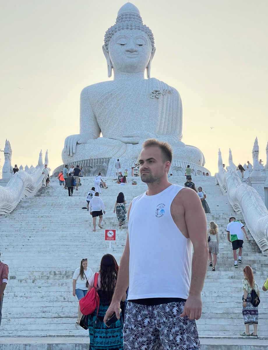 На Пхукете мы решили посетить смотровую площадку у Большого Будды – одно из самых популярных мест на острове. Но, к нашему сожалению, она была закрыта. Почему? В 2024 году выявили грубые нарушения по строительству и вообще не давали разрешения строительства, так же из-за сезона дождей разбыло фундамент. Но мы не расстроились! Рядом с Буддой есть холм, с которого открываются потрясающие панорамные виды. Да, было ветрено, но невероятно красиво! Советую приходить сюда на закат – зрелище того стоит. Вечером мы отправились в массажный салон, чтобы расслабиться после дня на солнце. Я выбрал традиционный тайский массаж за 300 батт – звучит заманчиво, правда? Но, честно говоря, если сравнивать с московскими салонами, в Москве делают качественнее. Конечно, там и цены в 6–7 раз выше, так что за такую стоимость в Таиланде всё равно стоит попробовать – релакс гарантирован! Вечерний Пхукет – это отдельный вайб! Идёшь по улицам: вокруг народ куда-то спешит, а мы неспешно направляемся за фруктами. П
