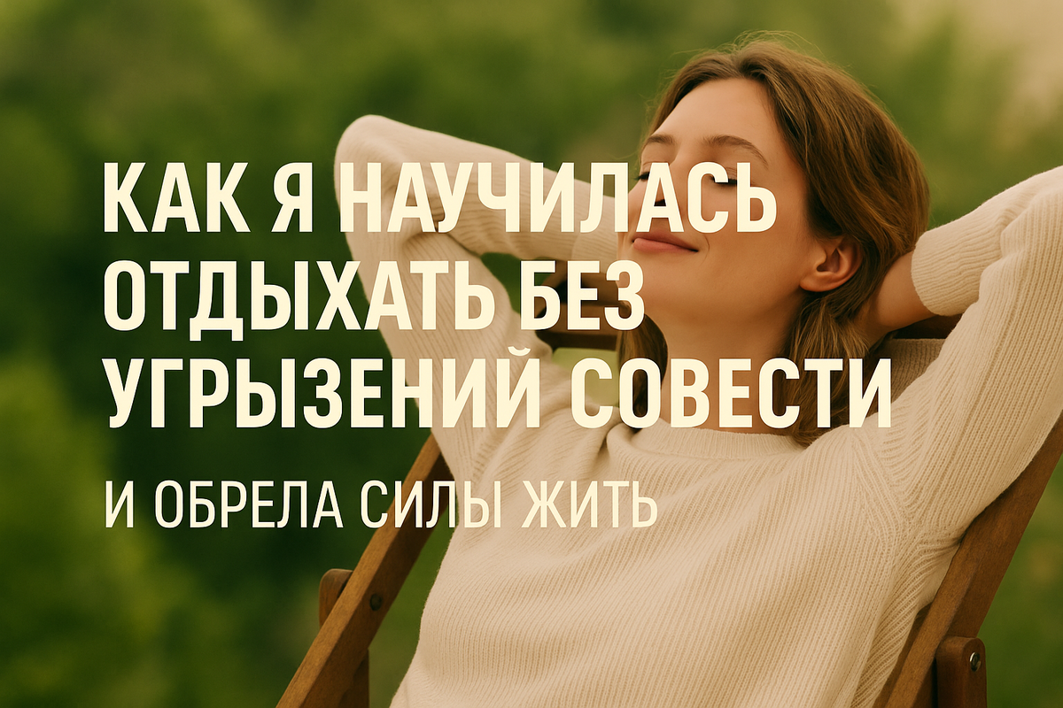 Чувство вины за отдых было моим постоянным спутником. Казалось, что чтобы расслабиться, нужно сначала добиться всего на свете — а уж потом, может быть, заслужить полчаса тишины.