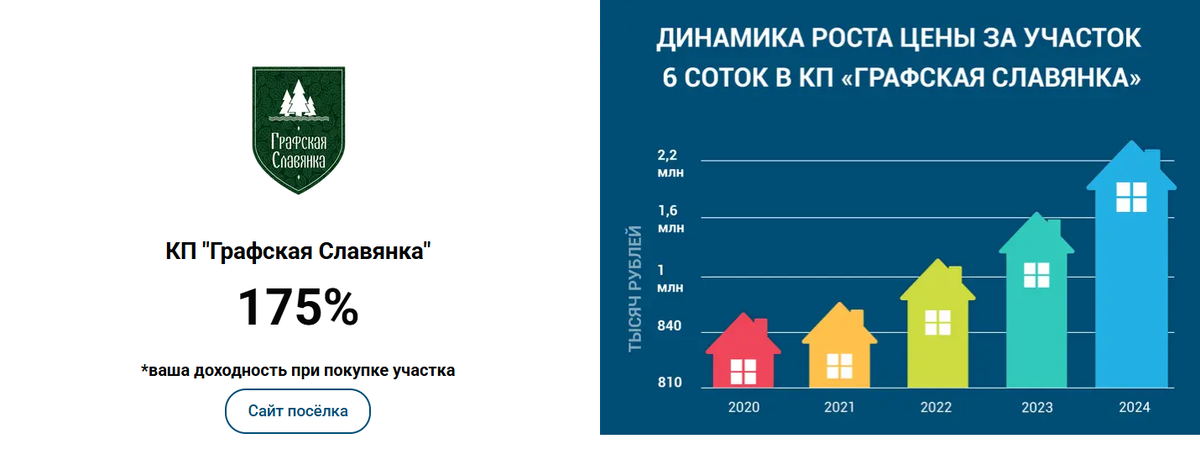 Если раньше инвестором считался тот, кто покупает акции и облигации, то сейчас люди переключились на инвестирование в землю и недвижимость. Последнее — стоит дороже и не факт, что быстро окупится. Например, вы купили квартиру, чтобы сдавать ее в аренду, но попались недобросовестные жильцы, которые испортили ремонт и теперь, нужно снова вкладывать средства. Поэтому инвестировать в земельные участки проще. И сегодня мы расскажем, почему выбирают участки от компании ГК “Армада”! Так, при покупке участка в коттеджном поселке “Графская Славянка” принесет вам 175% доходности. Вы можете убедиться в перспективе вложений, взглянув на наш график с 2020 года. Покупая участок в коттеджном поселке “Графская Усадьба”, доходность составит 275%. Ознакомиться со всеми участками и их доходностью можно по ссылке на нашем сайте. Потому что мы вкладываемся в инфраструктуру. Представьте, что вы купили участок, где пока нет большого количества домов, детских площадок или лесопарковых зон. Мы — постоянно улуч