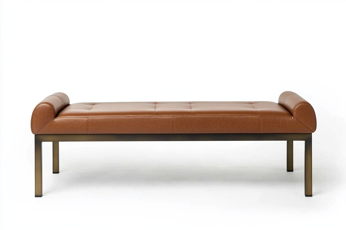 Создано на основе запроса: terracotta color leather fabric upholstered bench, backless, minimalist seat which is seamless on top, resort