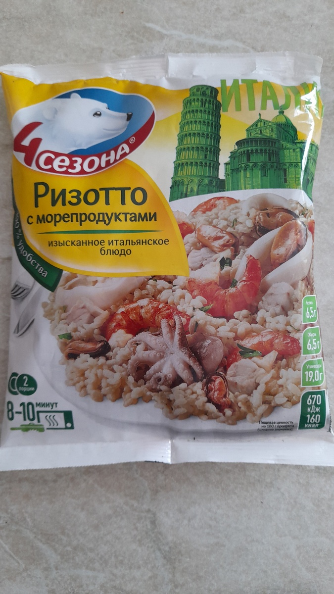 Готовые замороженное блюдо от 4 сезона Ризотто с морепродуктами однозначно куплю повторно!