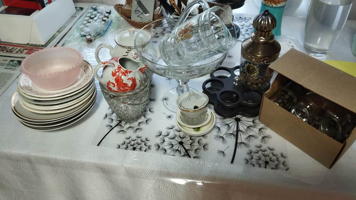 Добрый день всем! Мне сегодня привалило счастье. Целая коробка! Пришло смс с фото и надписью- надо? Конечно надо! Надо брать, а там разберемся! Что же я привезла? Шикарный большой графин. Завтра сварю компот и будет графинчик при деле. Давно мечтала о вазе для фруктов. Вместительная, а места мало занимает на столе. Такое ведёрко у меня есть, в нем конфеты на столе стоят. А это пойдет в беседку. Одна розетка у меня имелась, а теперь целый комплект! Любим мы суши для гостей крутить, розетки под соевый соус подойдут отлично. ЗиК. А эта розеточка меня умилила! Миленькая и изящная, будет моя, персональная. Тот же Конаковский завод. Советские селедочницы и солонка. В хозяйстве пригодятся. В селедочницы удобно всякие рулетики выкладывать. Дулевская баночка для горчицы. Сережа любит горчицу, будет в ней хранить. А этот красавец с золотыми вензелями? Достаточно большой, подойдёт на большую честнУю компанию. Впервые встречаю Капчагайский фарфоровый завод Казахской ССР. Этого малыша я сразу п