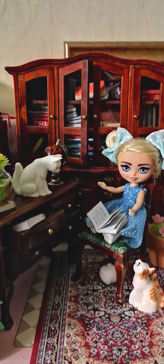 Привет) Я раньше очень любила читать бумажные книги (и уже упоминала об этом), но сейчас охладела к этому занятию... Не думала, что так будет, но это так... Мне не особо нравятся современные произведения, вдобавок снижение остроты зрения не позволяет получать былое удовольствие от прочтения бумажных книг... Но с удовольствием любуюсь видом читающих куколок - меня это радует и как-то даже успокаивает))) Поэтому я постоянно в свои кукольные композиции и инсталляции добавляю маленькие кукольные книжки))) Конечно, мои кукольные мебельные наборы очень помогают в "оформлении" и удобстве кукольного чтения )) Мой главный румбокс тоже не остался пустым) Ну и как же без читающего красавца-мужчины))) На такое можно смотреть вечно))) Вот как-то так на сегодня 😊 ••••••