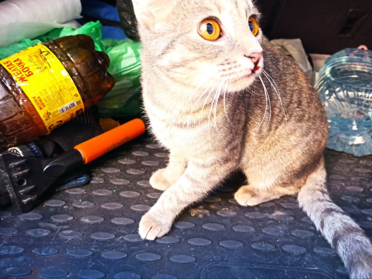 Выкинули кошечку люди не могут взять к себе, пока в машине. Помогите пристроить.