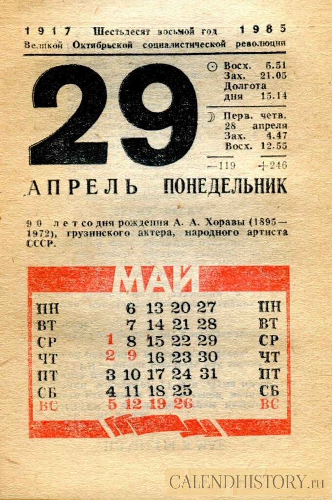 На календаре у нас понедельник - 29 апреля 1985-го года.