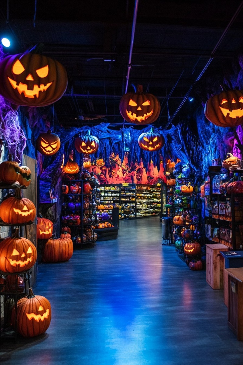 Создано на основе запроса: spirit Halloween, inside store, realistic, nighttime