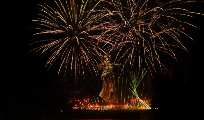 Фотограф снял, как «Родину-мать» озарил «Свет Великой Победы» в Волгограде