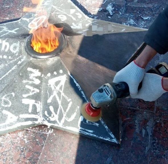 Металлическую звезду вечного огня отчистили от запрещенных символов