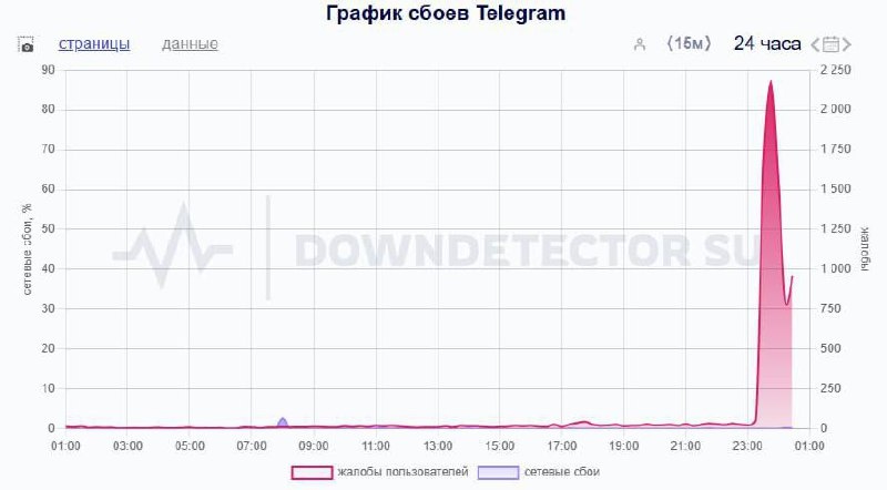 Пользователи Telegram сообщают о сбоях в работе мессенджера, зафиксировано более 2 тысяч жалоб, следует из данных Downdetector 🖥 Новости ННТ
