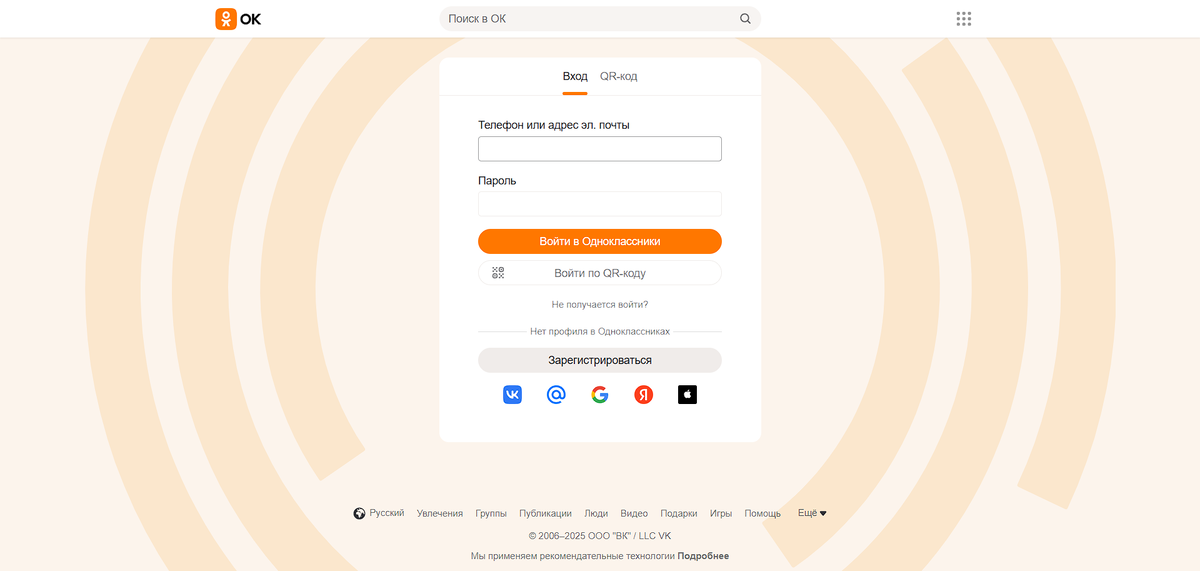 - Перейдите на официальный сайт: https://ok.ru