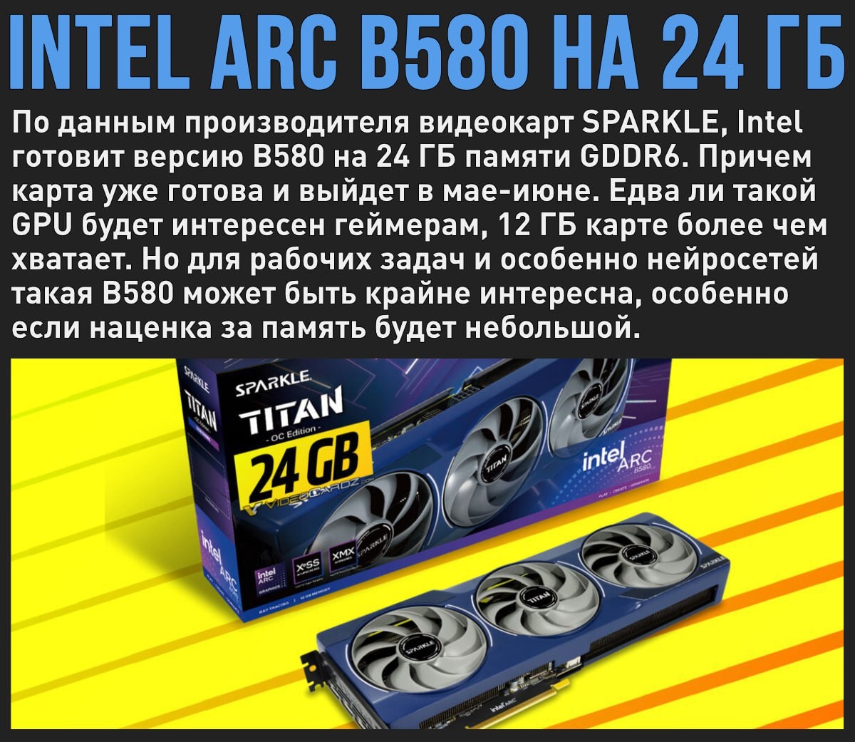 Intel готовит карту ARC B580 на 24 ГБ памяти. Будет забавно, если по цене она окажется на уровне RTX 5060 Ti на 8 ГБ