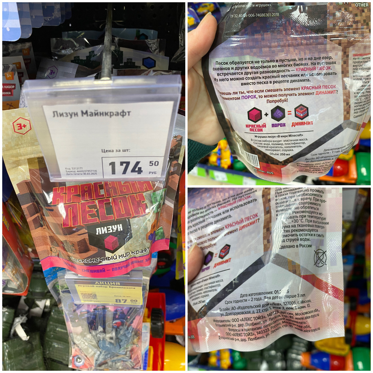 Всем привет. Меня зовут Наталья. Я очень рада видеть вас на своём канале. Сегодня мы с вами прогуляемся по магазину Фикс Прайс, который находится по адресу: город Йошкар-Ола, бульвар Чавайна, дом 10. Как всегда, я нашла интересные новинки. Так что устраивайтесь поудобнее. Желаю всем приятного времяпровождения. Лизун "Майнкрафт" стоимостью 174 рубля 50 копеек. Его объём 250 мл. Страна изготовления Россия. В магазине 4 варианта. Что-то мне подсказывает, что от Майнкрафта в этом лизуне только упаковка, а внутри обычный цветной лизун. Игрушка "Ползущее животное" стоимостью 69 рублей. В наборе: одно ползущее животное, один дополнительный держатель. Состав: полипропилен, термопластичная резина. Страна изготовления Китай. В магазине 4 варианта животных, хотя по мне это насекомые. Представлены они в трёх вариантах цвета. Аккумуляторный светодиодный кемпинговый фонарь стоимостью 449 рублей. С ним в комплекте идёт кабель USB Type-C длиной 30 см, крючок для подвешивания и ручка-крючок для перенос