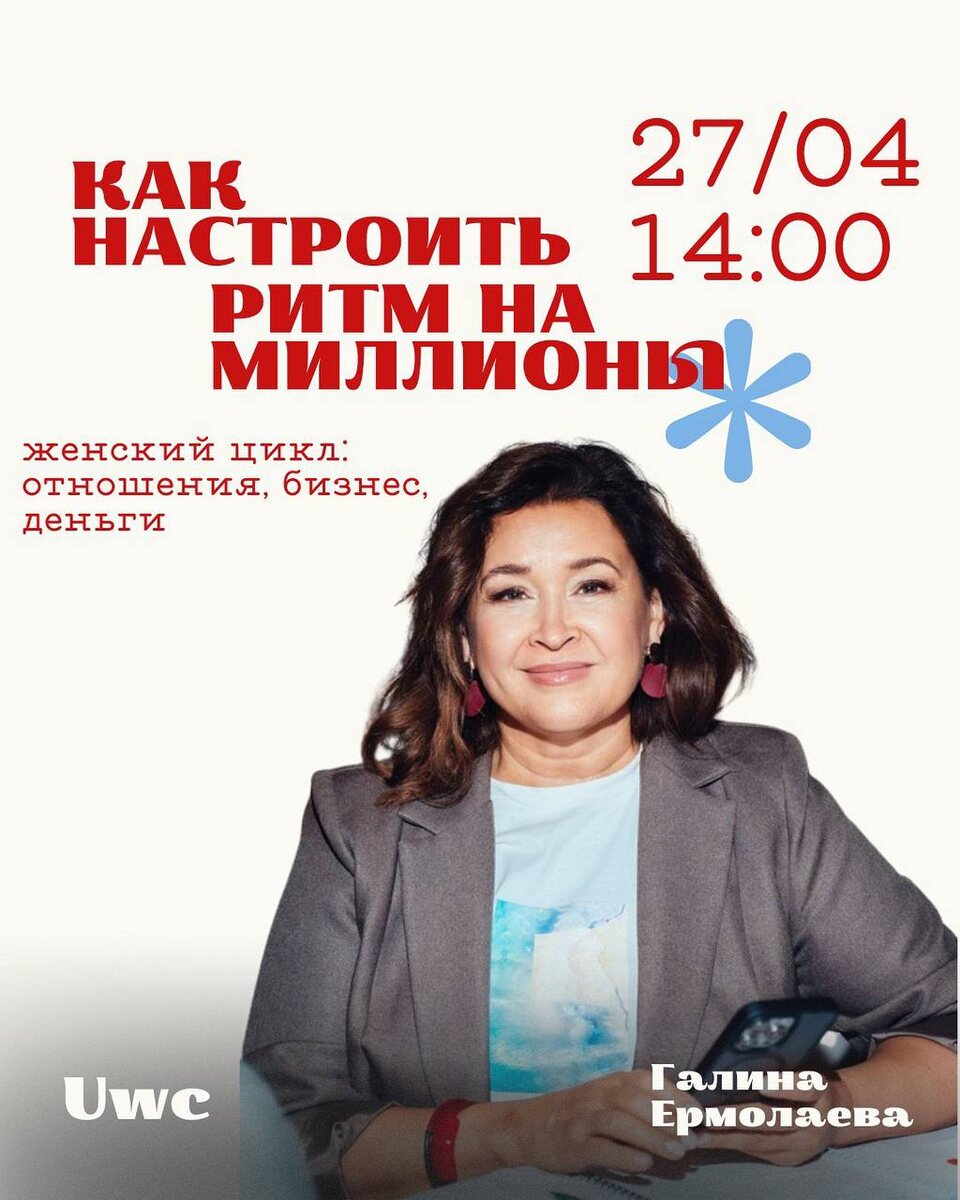 МОСКВА ВСТРЕЧАЙ! Как настроить ритм на миллионы Бизнес. Отношения. Женский цикл. Ароматы. Карты. 27 апреля в 14:00 пройдет встреча в Москве с психологом/коучем Галиной Ермолаевой @vipdoula Галина Ермолаева - психолог, коуч, телесно-ориентированный психотерапевт, перинатальный специалист, ведущая трансформационных игр 📍Спикер международных конференций по личному бренду и психологии успешности 📍Основательница проекта ПСИХОЛОГИЯ СЧАСТЬЯ И БОГАТСТВА, школа для доул и курсы повышения квалификации, где обучают новым профессиями и навыкам помогающих социалистов Мы поговорим про женский ритм, цикл, ресурсы, и как выстроить жизнь так, чтобы и в бизнесе, и в отношениях ты зарабатывала, не теряя себя Что будет: 🔮 Метафорические картыПозволят заглянуть в глубину: где я сейчас, что тормозит, какой мой следующий шаг? 🌸 Диагностика по ароматамТы выберешь интуитивно тот запах, что тянет — и он подскажет, что внутри мешает или, наоборот, поможет нарастить поток изобилия. 🌀 Ресурсные сос
