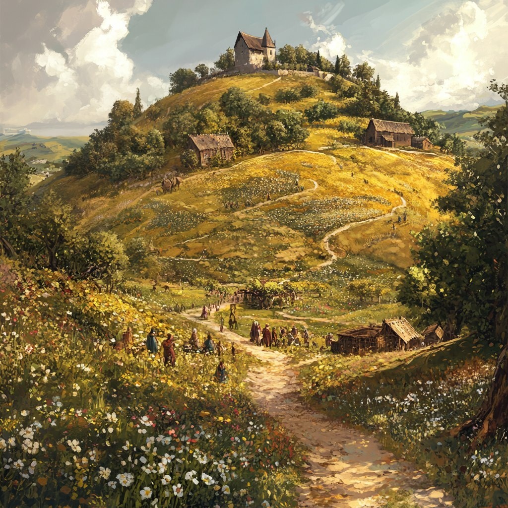 Создано на основе запроса: Flowering Hill. a single, extensive orchard and a large halfling farm, partially above ground, but mostly below. The petitioners here are all halflings, tending the great orchard and farm. Massive hill. Fantasy style --- Автоперевод: Цветочный холм. Как тебе эта генерация? 🤔 https://dzen.ru/id/65c0c65c86e4f837c27b24d7 #ИИ #AI #нейросеть #midjourney #art