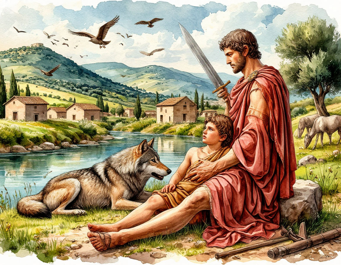 Весна. Лациум. На берегу Тибра два брата — Ромул и Рем — спорят, кто станет основателем нового города. Решение? Кто первым увидит знамение с неба. Победил Ромул. Он поднял меч, очертил священные границы и… началась история, которая всё ещё не закончилась. Как из жеста на песке выросла Империя, которой будут подражать веками? 📜 Легенда: Ромул и Рем — сыновья бога Марса и жрицы Реи Сильвии. Брошены в реку, вскормлены волчицей, воспитаны пастухами. 🗡 Реальность: Возможно, речь о союзе латинских племён, который закрепили ритуалом основания нового поселения. 📍 Место действия: Палатинский холм — будущий эпицентр власти, культуры и безумия. Интересно: Название «Рим» могло быть связано не с Ромулом, а с загадочным словом ruma — «грудь» или «гора». 🪶 Обряд: Ромул, с помощью священного плуга, проводит борозду, отделяя город от остального мира. Это сакральный акт: город теперь под защитой богов. ⚔️ Конфликт: Рем в насмешку перепрыгивает борозду. Ромул его убивает. Братская кровь на алтаре Имп