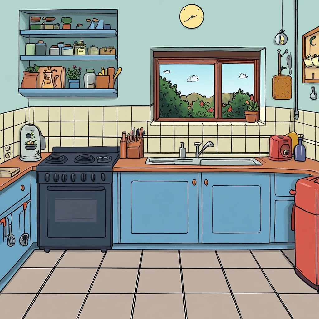 Создано на основе запроса: a children's book illustration of a kitchen background