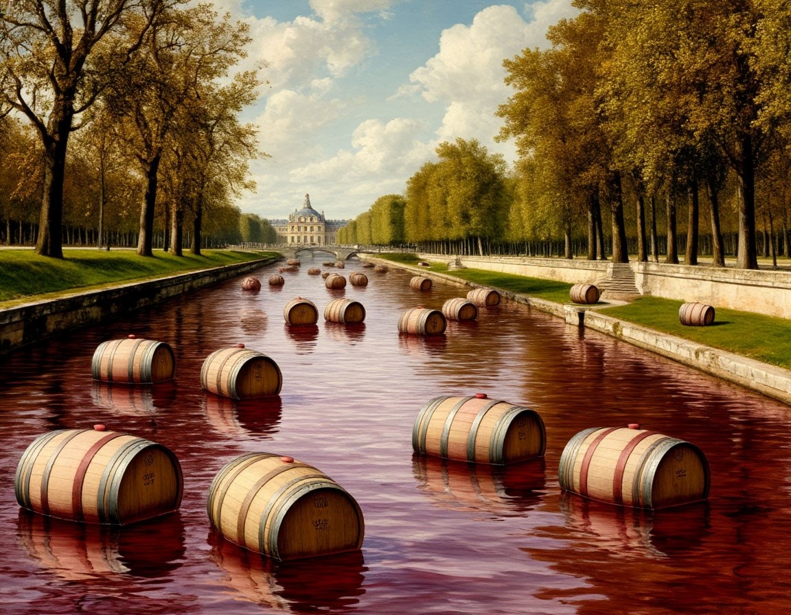 История знает множество абсурдных событий, но одно из самых эпичных — это «Великое Вино-Наводнение» 1687 года** при дворе Людовика XIV, Короля-Солнца. Это тот редкий случай, когда человеческая жадность, плохая логистика и любовь к алкоголю объединились в идеальный шторм... в буквальном смысле. Глава 1: Король, Который Слишком Много Хотел* Людовик XIV обожал роскошь. Версаль, золото, парики высотой с Эйфелеву башню (которой тогда ещё не было, но если бы была — он бы её тоже позолотил). Но больше всего он любил вино. Не просто любил — требовал, чтобы лучшие вина Франции лились рекой прямо к его столу. И вот однажды его винным поставщикам пришла в голову гениальная идея: «А давайте доставим сразу ВСЁ вино, какое есть в Бургундии, прямо в Версаль!» (Потому что хранить его в подвалах — это для слабаков.) Глава 2: Логистическая Катастрофа, или Баржа Глупости Для перевозки несметных запасов вина было решено использовать баржи. Много барж. Очень много барж. Настолько много, что к