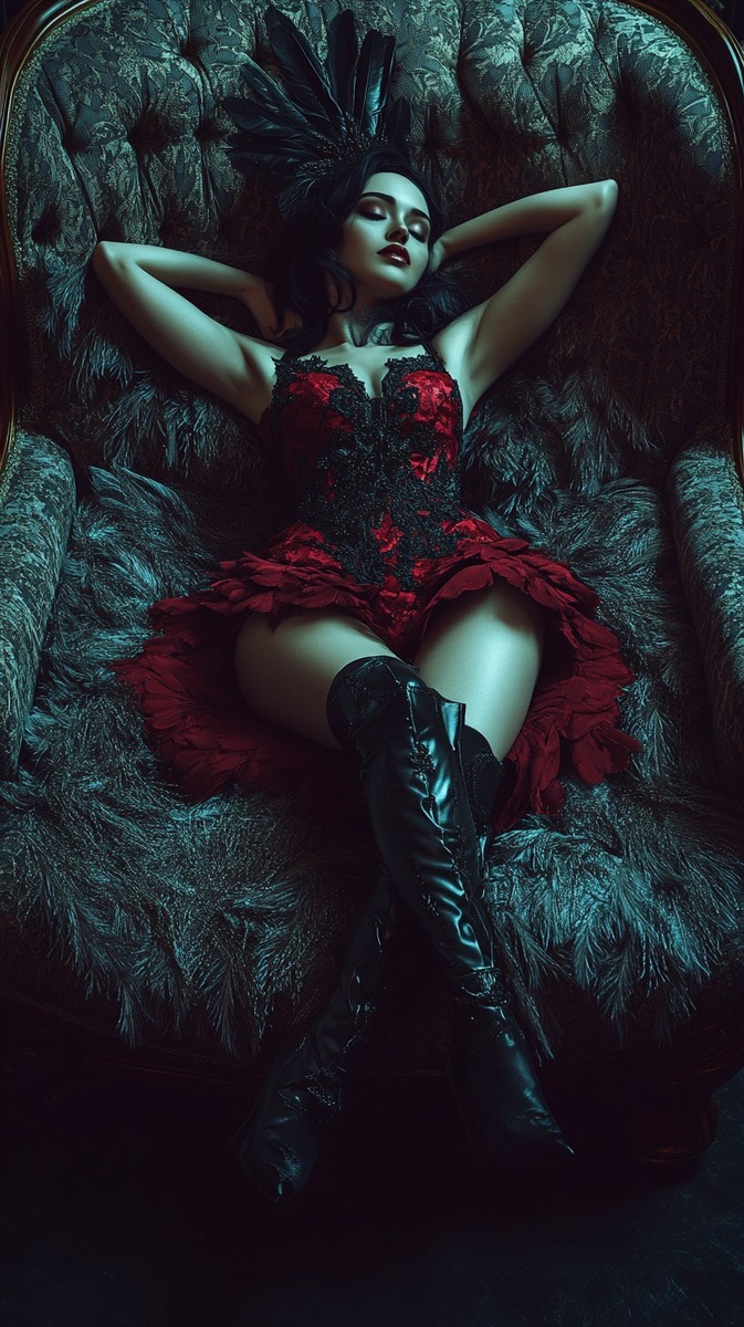 Создано на основе запроса: queen of hearts, image of a treacherous and beautiful lying friend, she lies on a sofa made of feathers, full body image, legs with high boots stretched towards the camera, low angle photo, photorealistic image, dark style, low lighting --- Автоперевод: Королева сердца, изображение коварного и красивого лживого друга, она лежит на диване из перьев, изображение всего тела, ноги с высокими ботинками, растянутыми к камере, низкоугольный фото, фотореалистическое изображение, темный стиль, низкое освещение Как тебе такая иллюстрация? 🤔 https://dzen.ru/id/65c0c65c86e4f837c27b24d7 #ИИ #AI #нейросеть #midjourney #art
