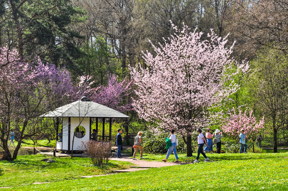 После середины апреля новая жизнь берется за силу, и наступает время сакуры. Сакура с каждым годом зацветает все раньше и раньше. В 2025 году пик цветения пришелся на 20 апреля, а, к примеру, 10 лет назад, в 2015 году, я пришла в Японский сад в первых числах мая, а сакура только-только зацветала.