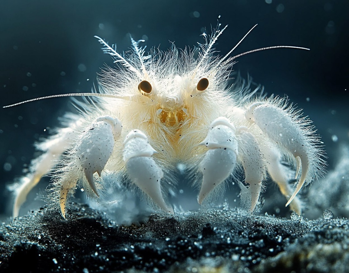 Создано на основе запроса: savage arctic crustacean with a furry coat in its natural habitat and adapted for frigid icy environment