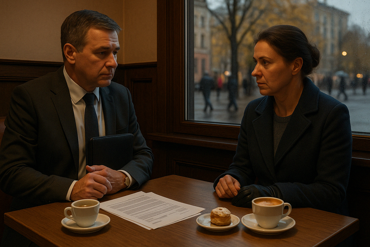 Олег сложил документы в кожаную папку. За окном кафе «Брик» сгущались ноябрьские сумерки. Прохожие спешили, опустив головы. Олег побарабанил пальцами по деревянной столешнице. Он пришёл на полчаса раньше — привычка, выработанная годами руководящей работы. Контролировать ситуацию, задавать тон встречи.