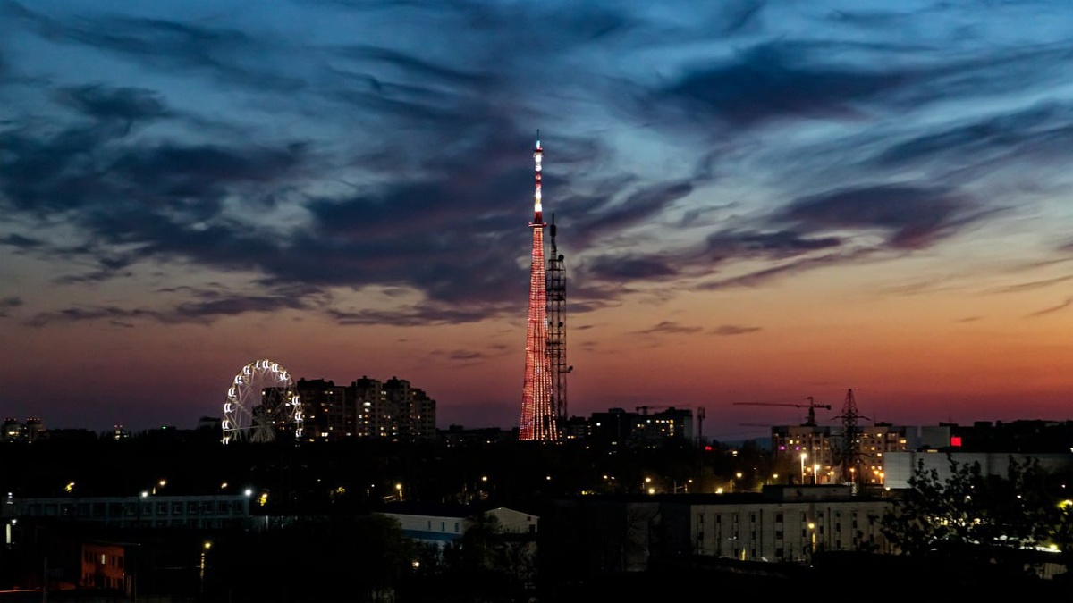 ✨Сегодня вечером телебашня вновь стала центром притяжения внимания на панораме, озарив город ярким сиянием