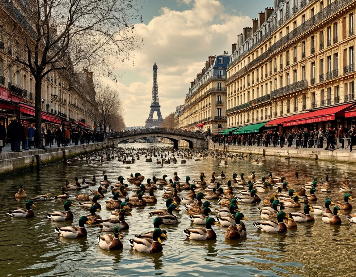 История знает множество странных войн: конфликт из-за ведра, битва за футбольный мяч, вторжение из-за пьяного поросенка. Но ни одна из них не сравнится по абсурдности с Великим Утиным Нашествием 1913 года — событием, которое едва не привело Францию к экологическому коллапсу и заставило парижан срочно вспомнить рецепт утки по-пекински. Глава 1. Франция в опасности! 1913 год. Европа на пороге Первой мировой, но Париж обеспокоен куда более серьезной угрозой: город атаковали утки. Не просто утки, а озёрные кряквы — те самые милые создания, которых обычно подкармливают бабушки в парках. Но в тот год что-то пошло не так. Возможно, французы слишком щедро сыпали хлебные крошки, может, утки тайно проникли в винные погреба, но факт остаётся фактом: десятки тысяч пернатых захватили все водоёмы Парижа. Они плавали в фонтанах Тюильри, оккупировали Сену, загадили Лувр (историки до сих пор спорят, был ли это знак протеста против импрессионизма). Французы, привыкшие к романтическим прогулка